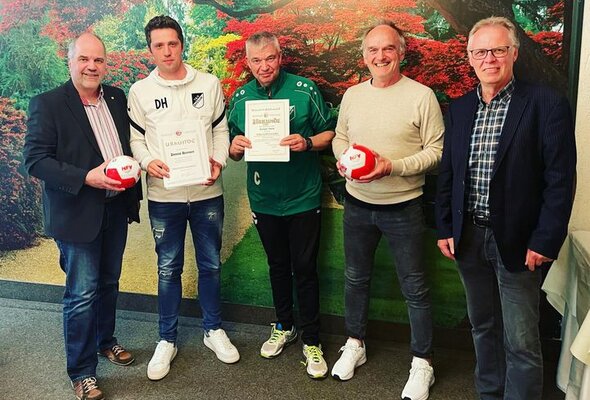 v.l.n.r.: Andreas Henze (NFV DH Vorsitzender), Dennis Hammer (Ehrennadel NFV), Rüdiger Ebert (Ehrenamtspreis NFV DH), Jürgen Schäfer (Spartenteam TSV), Heino Dahlskamp (Ehrenamtsbeauftragter NFV DH).